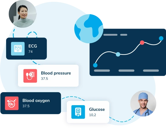Use wearable insights to continuously scan your population, identify orange and red flags and predict risk cases to intervene preventively. Deliver a connected patient journey and ensure health professionals have the latest patient wearable data in real-time based on HL7FHIR data output.
